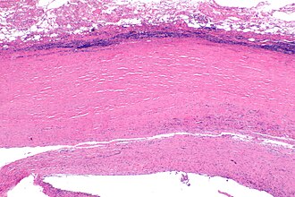 Micrograph of a pleural plaque. H&E stain. (WC/Nephron) | |